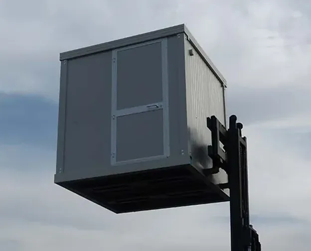 Handling: 4 sockets on the roof for lifting hooks, fork passage in the floor for handling with a forklift equipped with 250 cm forks.